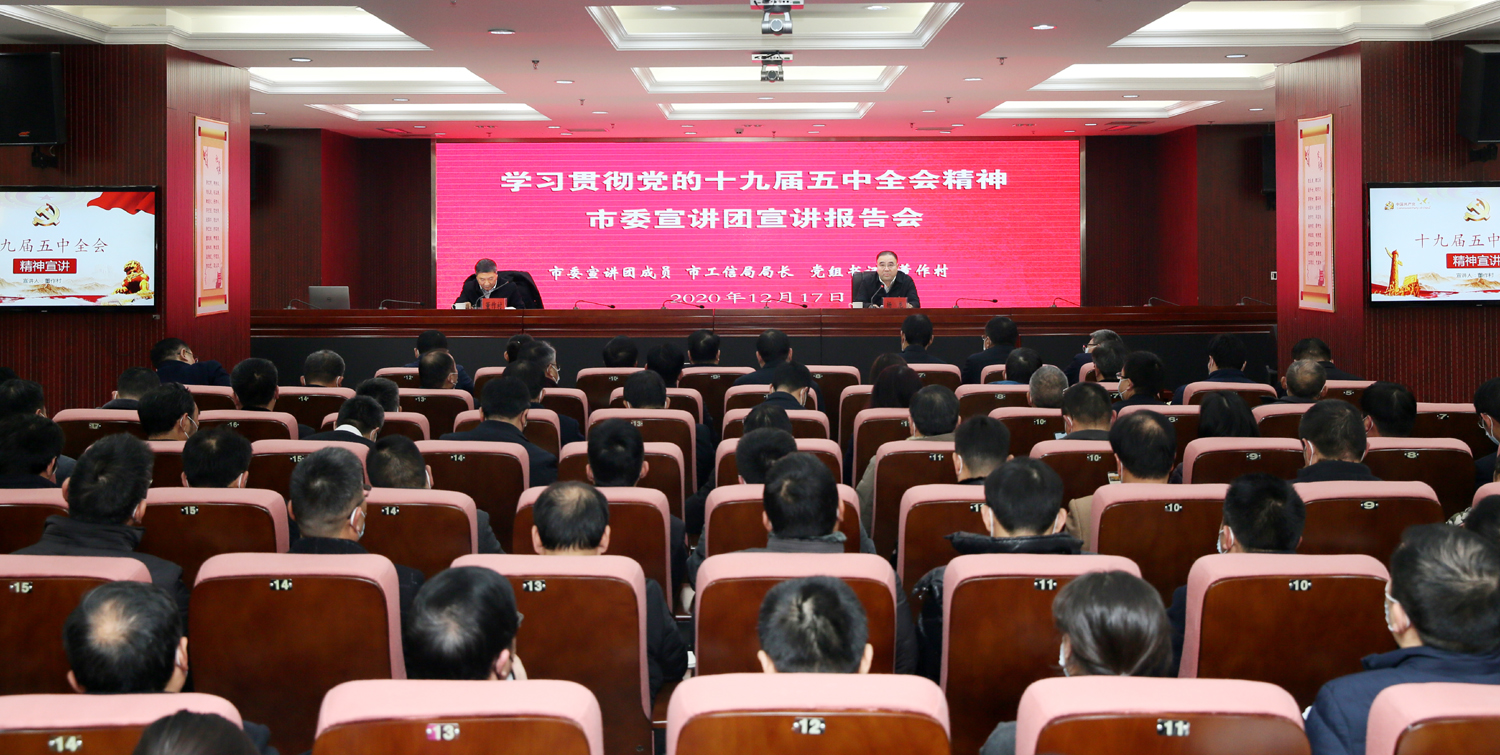 根據(jù)市委統(tǒng)一部署,12月17日,市委宣講團(tuán)來集團(tuán)開展黨的十九屆五中全會(huì)精神宣講活動(dòng)。市委宣講團(tuán)成員、工信局局長(zhǎng)、黨組書記董作村作宣講報(bào)告。集團(tuán)公司黨委書記、董事長(zhǎng)楊龍主持宣講報(bào)告會(huì)。