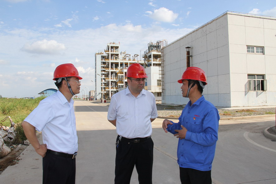 楊龍一行先后查看了生產(chǎn)廠區(qū)各裝置運行情況、固廢庫暫存區(qū)、固廢暫存庫建設現(xiàn)場、廠內(nèi)堿渣和鈦渣拋填試驗場地,了解氯化芐二期試生產(chǎn)、上下游廠家、外商貿(mào)易等情況。楊龍強調(diào),要提高綠色發(fā)展意識,壓實各級責任,做好安全環(huán)保工作,并要以產(chǎn)品銷售、新項目開發(fā)、固廢綜合利用為抓手,全方位、多渠道拓展市場,為工投鹽化工產(chǎn)業(yè)發(fā)展夯實基礎。