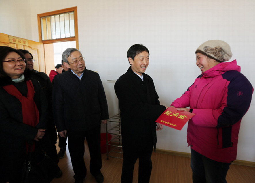 在慰問現場,市領導向困難勞模楊樹庭和困難職工丁燕青,以及他們的家人表示新年的問候,詳細了解他們家庭的生活困難和問題,并送上慰問金和慰問品。