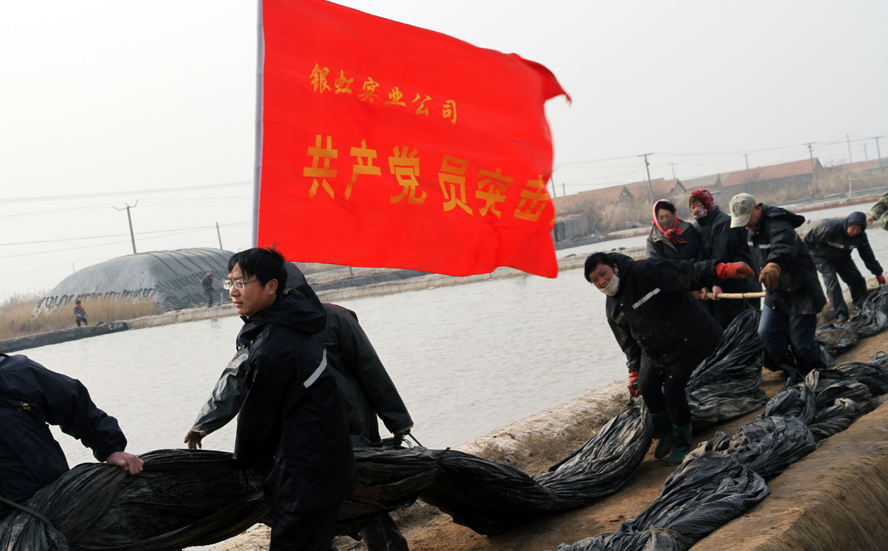 11月16日,一面紅色的黨員志愿者服務隊隊旗在陽光下飄展,在一片雪白結晶池埝的映襯下,顯得格外鮮艷。徐圩投資公司深港服務區12名黨員志愿者頂著寒冷的晨風,緊忙趕往新灘服務區原料鹽基地建設現場,幫助其12個單元搶裝池埝土工布,也為這個冬天添加幾許新鮮的氣息。