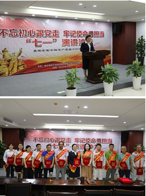為慶祝“七一”中國共產(chǎn)黨成立97周年,6月28日下午,公司黨委舉辦“不忘初心跟黨走 牢記使命永擔(dān)當(dāng)”主題演講沙龍活動。公司領(lǐng)導(dǎo)班子、各單位班子成員,機(jī)關(guān)全體人員等70余人觀看沙龍。演講期間,對2017—2018年度先進(jìn)黨支部、先進(jìn)黨小組、優(yōu)秀共產(chǎn)黨員、優(yōu)秀黨務(wù)工作者進(jìn)行了表彰。