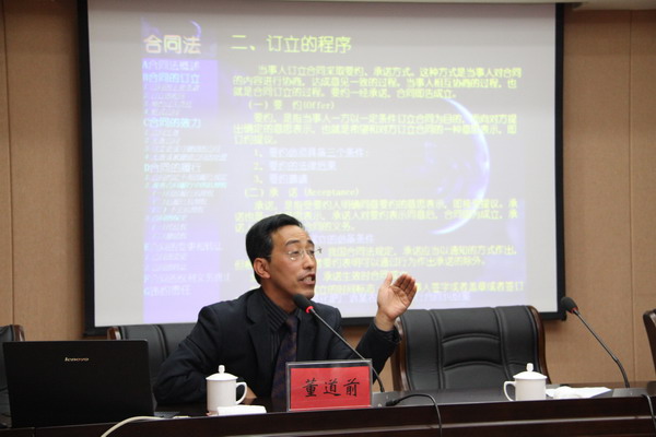 11月2日下午,公司在淮鹽大酒店召開黨委中心組學(xué)習(xí)《合同法》擴大會議,邀請連云港師專董道前教授講課。公司領(lǐng)導(dǎo)班子全體成員、各基層單位領(lǐng)導(dǎo)班子成員、公司機關(guān)全體管理人員、天然居管理人員參加學(xué)習(xí)。(司宣)