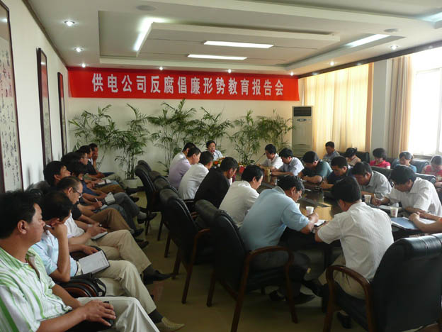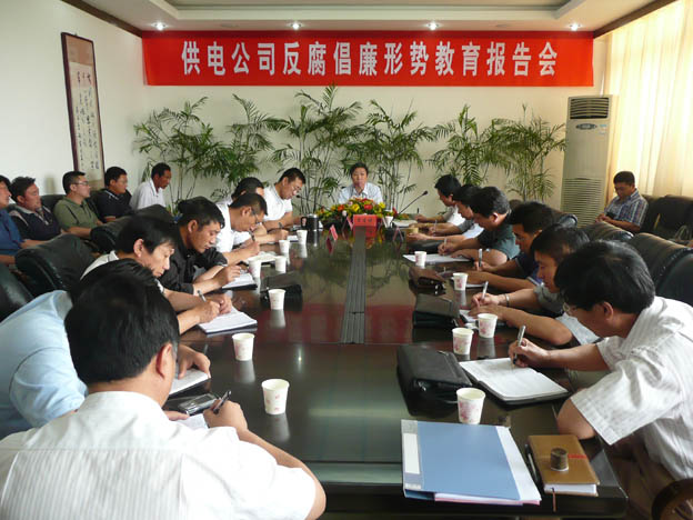近日,我公司邀請(qǐng)了市紀(jì)委常委、市紀(jì)委秘書長、市監(jiān)察局副局長雷生保同志來我公司作反腐倡廉形勢(shì)教育報(bào)告,公司領(lǐng)導(dǎo)、機(jī)關(guān)中層干部、各供電所領(lǐng)導(dǎo)班子及部分職工代表參加了會(huì)議。