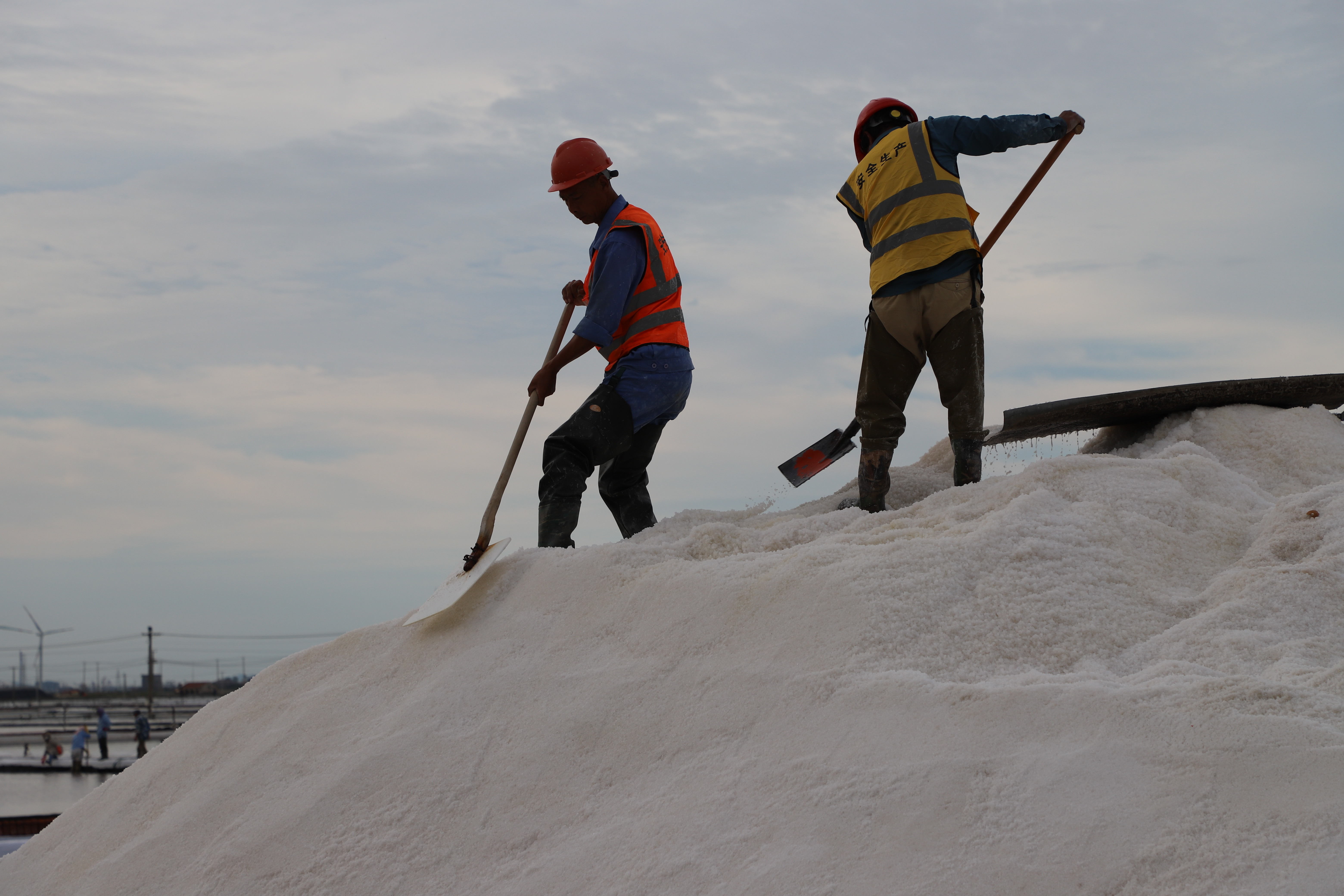 原鹽生產(chǎn)不松勁。每年的國慶假期總是與“秋扒”不期而遇。由于受連續(xù)的陰雨天氣影響,今年的秋扒工作一度延后。9月29日--9月30日,凌晨5點鐘,日曬鹽田的鹽圩小路像往常一樣成了一道最美的風(fēng)景線,鹽工們?nèi)蔽溲b奔赴各自工作點位進(jìn)行收拉塑布、排淡等工作。為了搶時間,抓進(jìn)度,鹽工們緊鑼密鼓地忙碌起來,籌備扒鹽工作,天氣剛轉(zhuǎn)好,只見有的在整理塑布,有的破碴,10月2日,10臺扒鹽機(jī)組全部運轉(zhuǎn)起來,潔白的鹽廩逐漸擴(kuò)大,節(jié)日期間將扒鹽30000余噸。