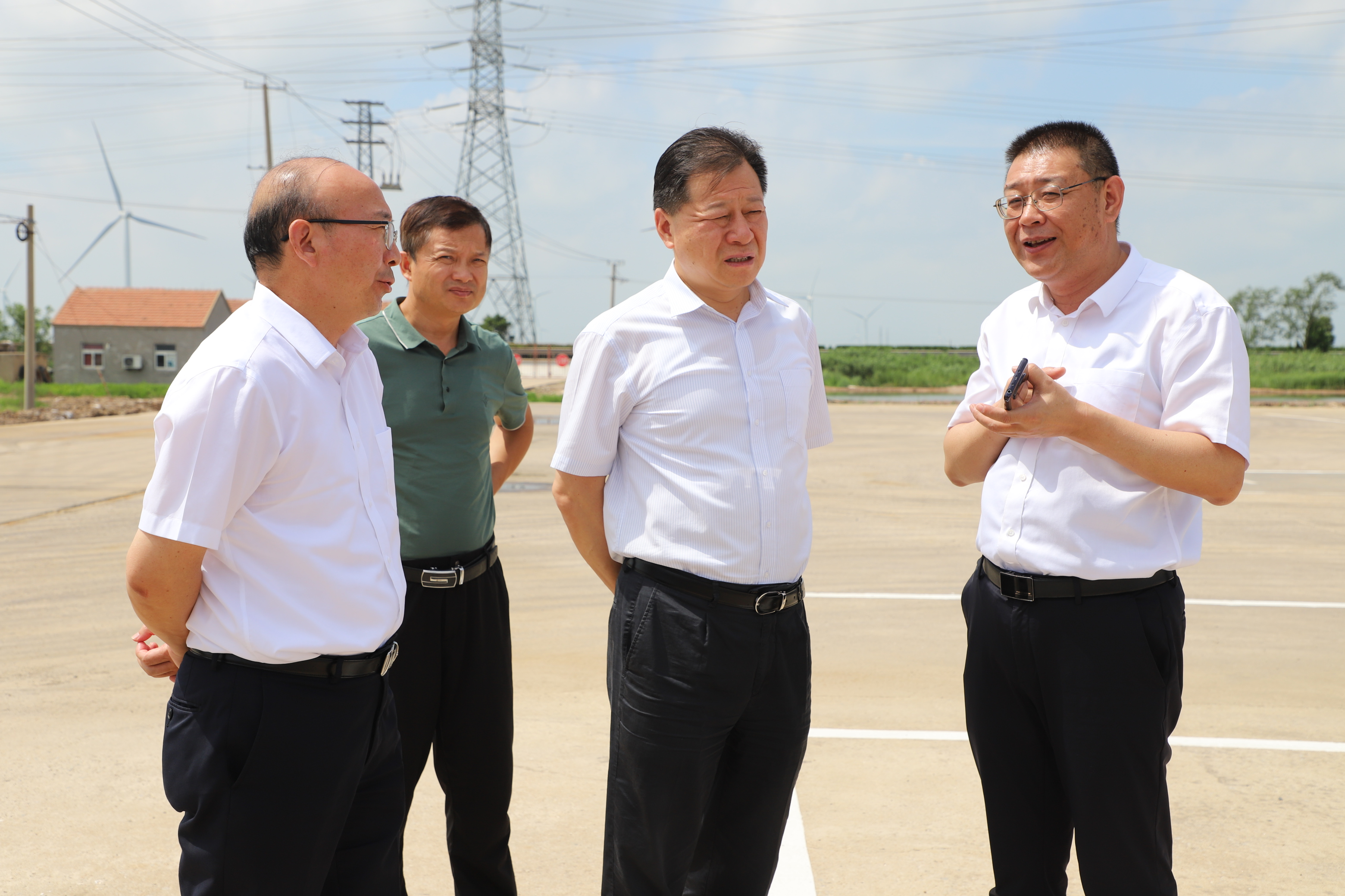 82日,連云港市副市長高圣華、市政府辦公室副主任孫京海、秘書八處副處長孫虎一行人員在工投集團公司黨委書記、董事長丁銳的陪同下來灌西投資公司調研指導工作。灌西投資公司黨委書記、董事長孫政權、總經理吳衛平、常務副總經理徐一林等陪同調研。
