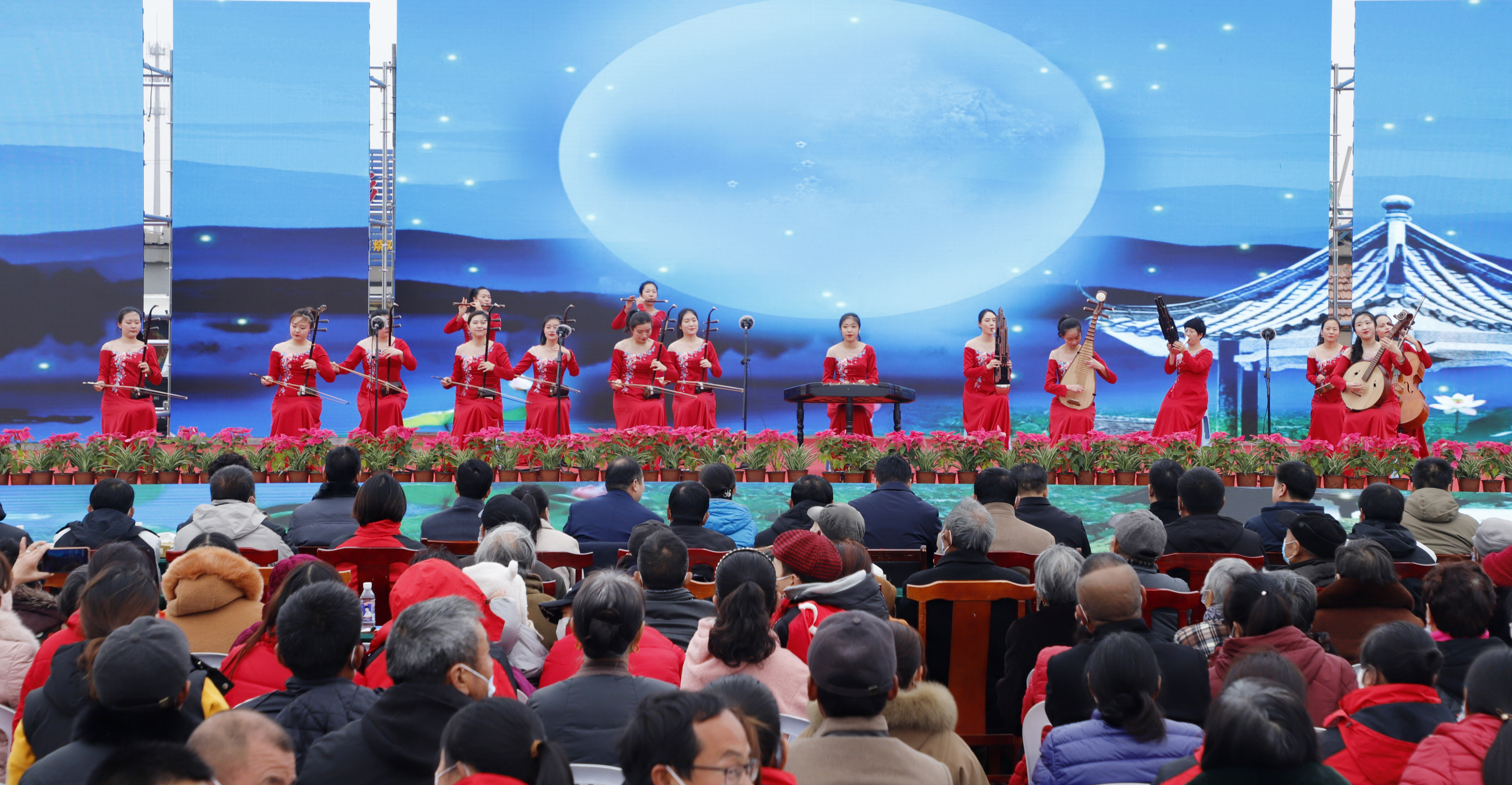 演出在精彩的合奏《水鄉情韻花好月圓》中拉開序幕,現場洋溢著歡樂的氣氛。健身操《向快樂出發》節奏歡快,動作利落灑脫,盡情釋放青春活力,獨舞《浣》旋律優美,衣袖舞動,舞出溫婉柔美之態?,F代與古典、活力與韻味的巧妙結合,為現場觀眾帶來了一場視覺上的盛宴。男聲獨唱《我是真英雄》、二胡獨奏《太極琴俠》、舞蹈《我和我的祖國》,以及民樂合奏《樂見西游》,悅耳的人聲與悠遠的琴聲合鳴共振,營造出悠揚美妙的音樂劇場。相聲《歡聲笑語》和淮海戲《借靴》語言幽默風趣,劇情跌宕起伏,演員與臺下觀眾時不時的互動更是掀起了一波又一波的高潮。最終,精彩紛呈的演出在女聲獨唱《錦繡前程》中落下帷幕。
