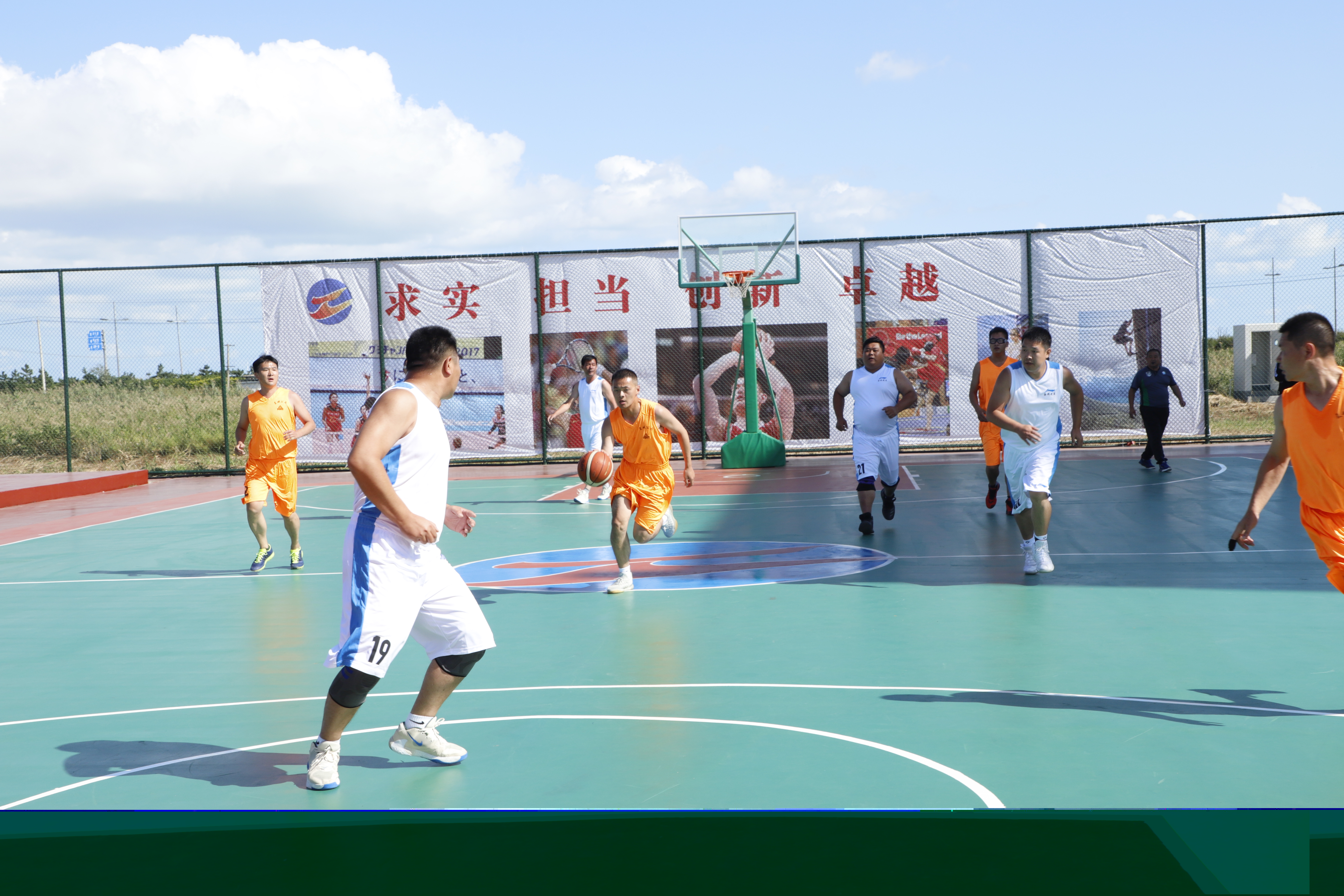 金橋制鹽迎戰氯堿,第一節雙方拼搶的比較厲害,比分是交替上升,以10:10結束首節;第二節,氯堿調整戰術,由快攻改為中遠投,一下打開膠著的局面,以26:20領先金橋制鹽;第三節,金橋制鹽多次失誤給對方抓住拉開比分的機會,氯堿打出19:0的高潮,而金橋制鹽這節一分未得,45:20結束第三節;第四節盡管金橋制鹽努力追趕,可惜氯堿并未給其機會,最后比分定格在53:35,氯堿獲勝。