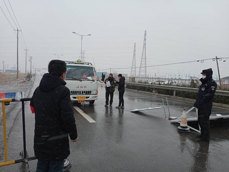 在324省道灌西入口和場(chǎng)內(nèi)各道路口,綜合治理辦公室和新河、埒南制鹽公司疫情防控一線的“戰(zhàn)士們”迎著風(fēng)雪和嚴(yán)寒的猛烈沖擊,堅(jiān)守崗位,認(rèn)真履職,他們?cè)诳谥凳兀瑖?yán)格按照要求對(duì)出入車輛、人員進(jìn)行檢查,認(rèn)真做好相關(guān)登記,以實(shí)際行動(dòng)踐行著諾言,他們守住了防疫一線的門(mén),扎牢了抗擊疫情的網(wǎng),他們是風(fēng)雪中最美的身影!鮮紅的黨旗下,黨徽熠熠生輝,要問(wèn)今天最美的風(fēng)景是什么,值守卡口的黨員干部用行動(dòng)告訴你,是風(fēng)雪中對(duì)灌西這片凈土最堅(jiān)定的守護(hù)!
