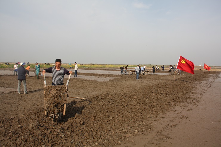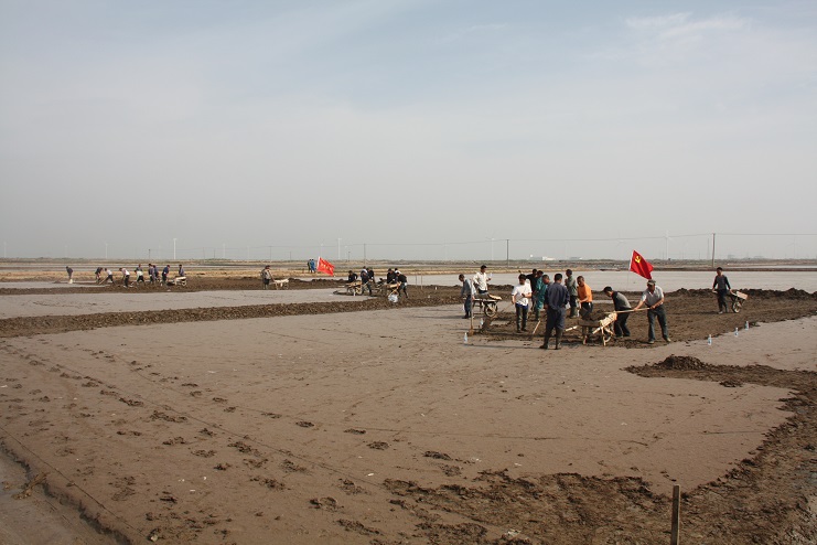 據了解,《淮鹽制作技藝》已于2015年成功申報國家級非物質文化遺產保護項目并審核通過。此次央視攝制組主要圍繞淮鹽發展歷史來我公司拍攝平面灘、對口灘等制鹽工藝及過程,為制作淮鹽文化宣傳片收集影像資料。埒南制鹽分公司黨支部在接到通知后,高度重視此項工作,迅速組織黨員職工及有經驗的班組長投入到灘地改造工作中來,為確保此次拍攝工作順利進行奠定了扎實的基礎。活動現場,大家按照事先劃分好的區域分工協作,互相配合,有鏟泥的,有利用獨輪車推泥的,不一會功夫就完成了四條池埝的制作。據“淮鹽文化傳承人”韓井軍介紹,下一步在平面灘制作完成后,再對格塊進行晾曬、“三嗆四壓”等工序后才能投入使用。(封楊)