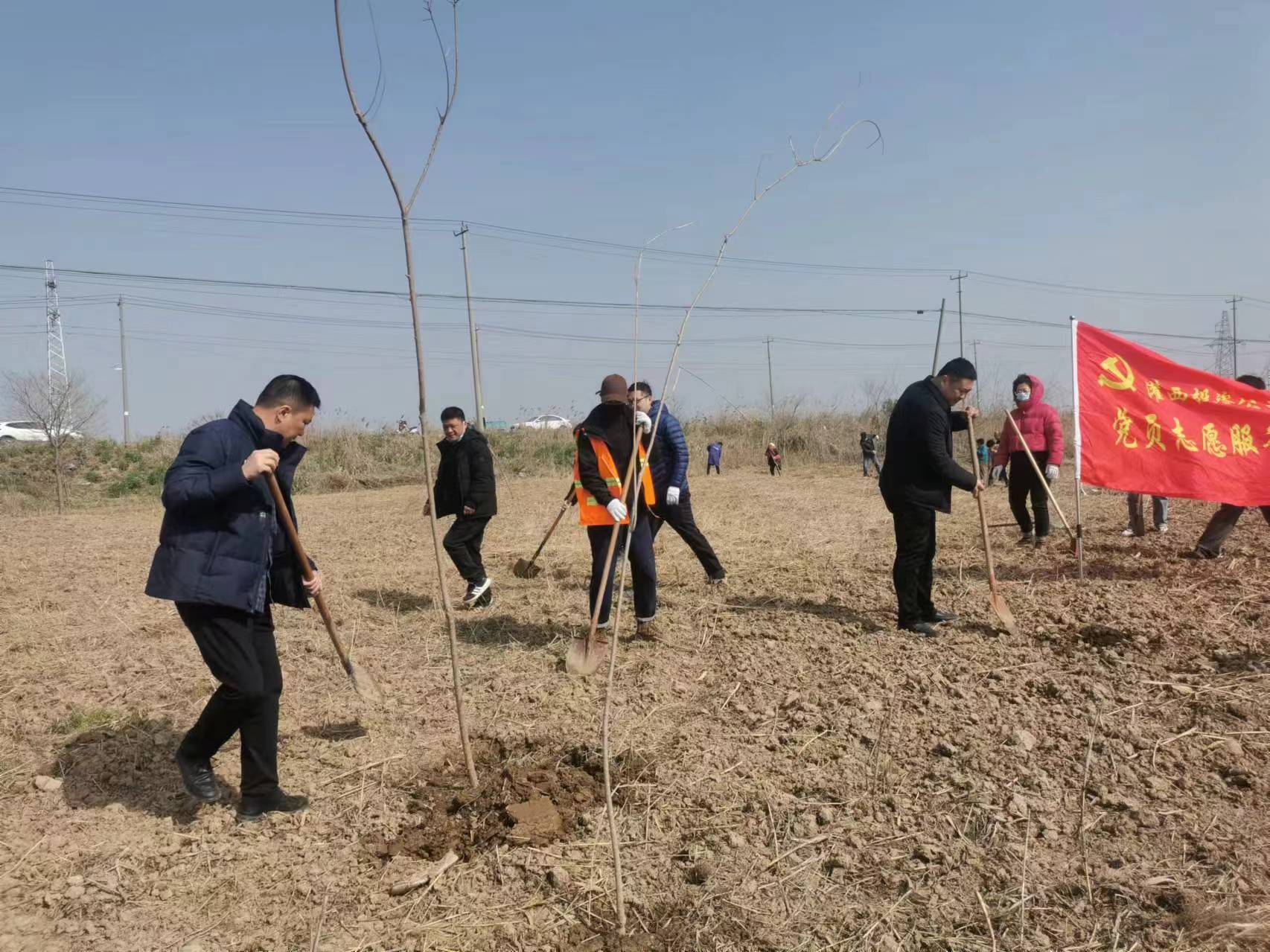 本次活動由公司領導班子帶隊,公司黨員、職工共40余人參加。在植樹現(xiàn)場,大家分工合作,有的挖坑、有的扶苗、有的培土、有的踩實、有的澆水,每個人都全身心投入植樹工作中。通過大家的默契配合與辛勤勞動,一株株新栽種的烏桕樹苗迎風而立,成為一道靚麗的風景線。