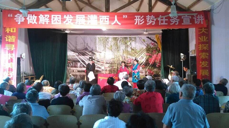 為豐富社區居民的業娛文化生活,社區淮海戲劇團文藝宣傳隊開展迎國慶送戲到社區活動,分別于9月29日下午和晚間為社區居民送上了精彩紛呈的戲劇《珍珠塔》和《姐妹易嫁》,受到了社區居民群眾的熱烈歡迎和一致好評。(社區管理中心黨總支)