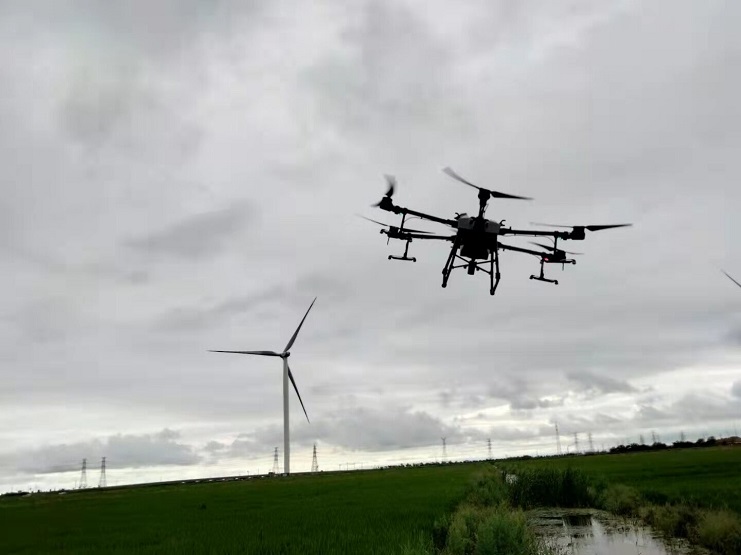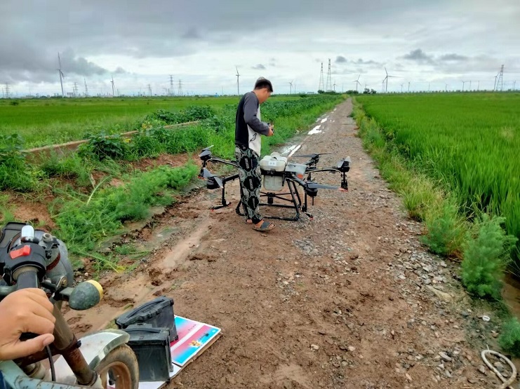 近日,明威公司農田水稻進入穗期,是水稻形成產量的關鍵時期,為切實做好水稻期病蟲害防治工作,明威公司組織員工在下雨間隙,用一臺無人機,對二灣種植區的稻田噴施除蟲農藥——齊,以增強水稻對病蟲害的防控能力。