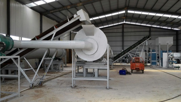 在生產車間內,王董事長饒有興致地參觀了生產線流程,詳細詢問了設備有關數據,對生產岀的顆粒狀有機肥表示滿意。并就綠淮下一步銷售,生產,安全等工作作了指導。(時寬銀)