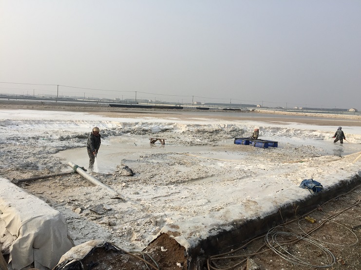 新河制鹽利用有利天時做好硫酸鈣清理工作