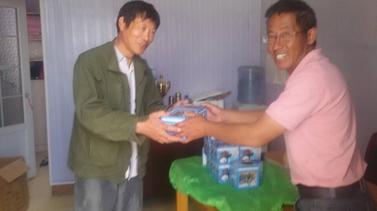 5月25日上午,埒南制鹽分公司為每位職工配備了一臺礦燈。