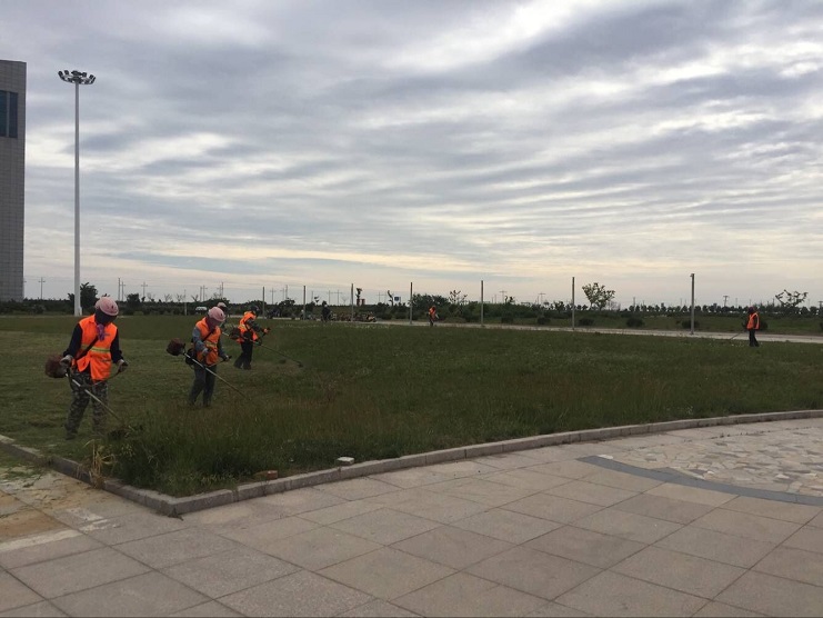 由于連續多日的高溫天氣使路邊雜草快速生長,不僅影響了工作環境,還影響了綠化帶內的美觀。