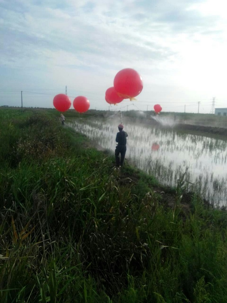 分公司埒南大阜二圩水稻現在正值灌漿期,稻瘟病、紋枯病、鉆心蟲等各種病蟲害隨之而來。近日,為減少人為對水稻的損壞,農業分公司利用新型技術,采取氣球灑藥的方法,對稻田進行噴灑,將防蟲治病工作做到實處。(實業公司)