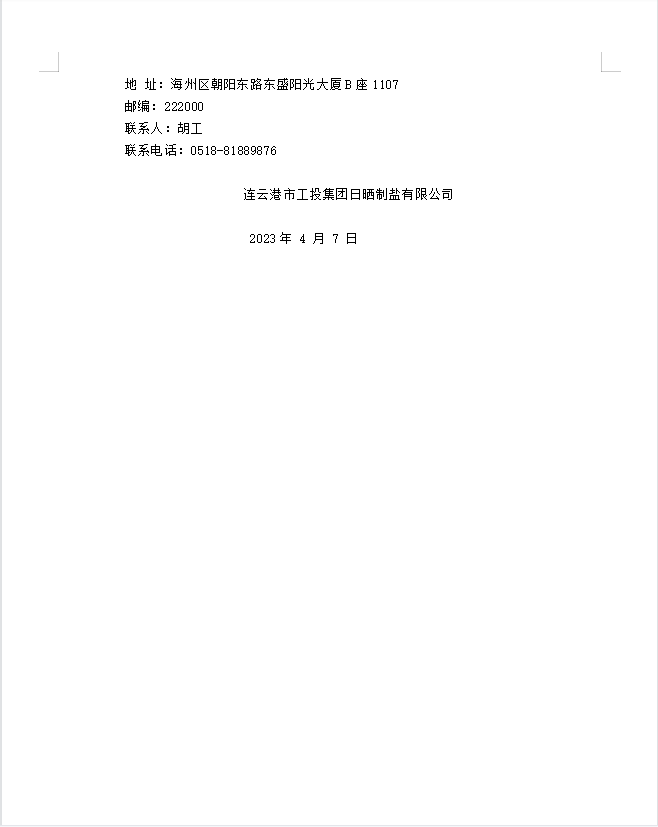 連云港市工投集團日曬制鹽有限公司鹽膜招標公告