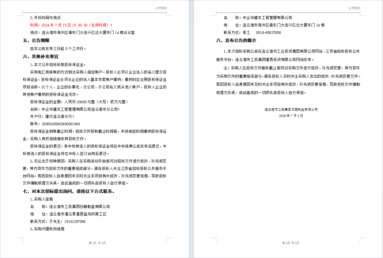 連云港市工投集團日曬制鹽有限公司液體氯化鈣(鈣液)采購招標公告(二次)