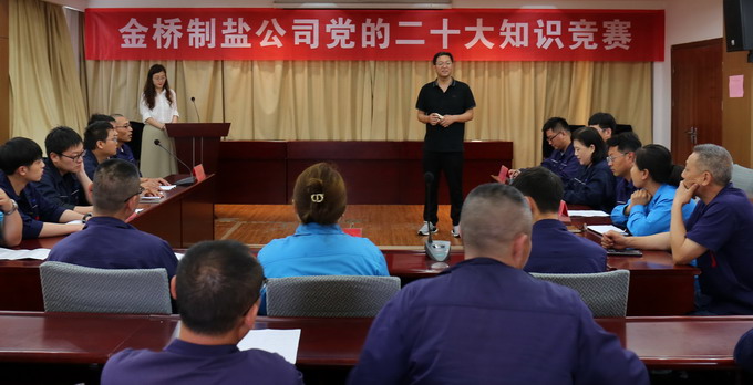 此次競賽是公司慶祝建黨102周年“九個一”系列活動之一,試題涵蓋黨的二十大報告、《中國共產黨章程(修正案)》、習近平總書記在黨的二十大閉幕式上的重要講話等內容。競賽分為必答題和共答題兩種題型,經過三輪的激烈角逐,機關支部、加工鹽支部和配送中心支部分獲一二三等獎。