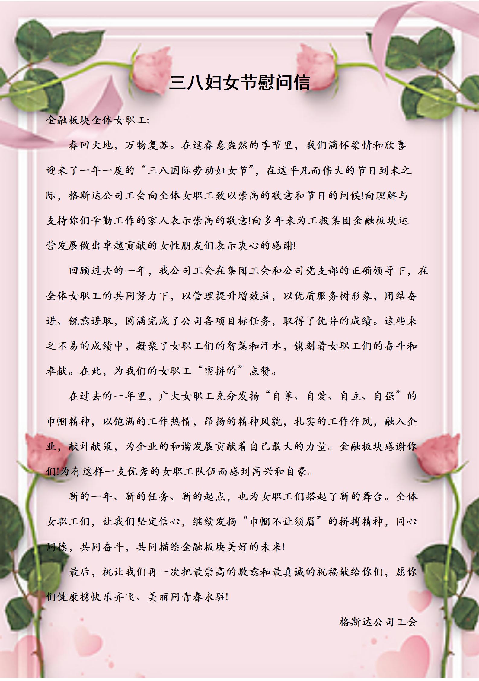 致金融板塊全體女員工的一封信