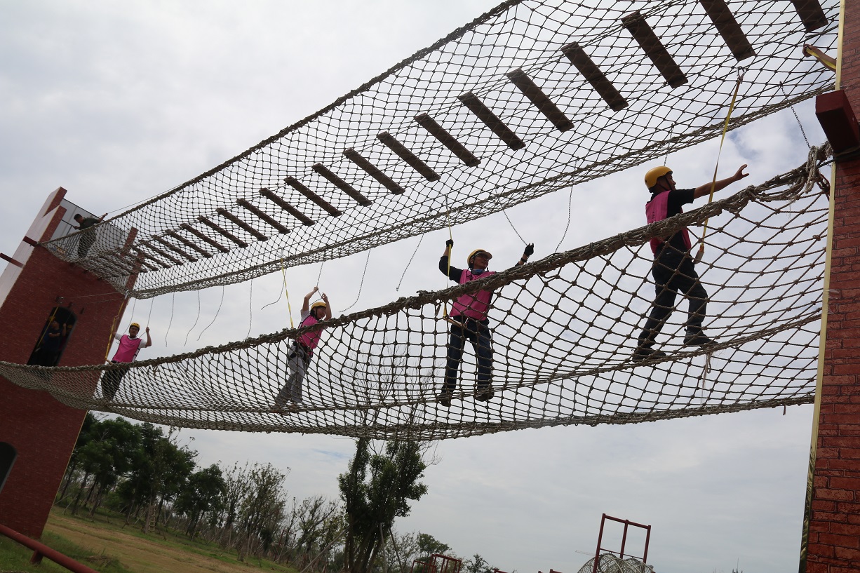 接著,四個小組先后體驗了“強渡大渡河”、“飛奪瀘定橋”等紅色實景教育項目,使廣大職工體會到當(dāng)年紅軍長征的艱苦環(huán)境,感受了重走長征路的氛圍,增進(jìn)了職工之間的團(tuán)隊友誼、鍛煉了隊員勇于挑戰(zhàn)的堅強意志。