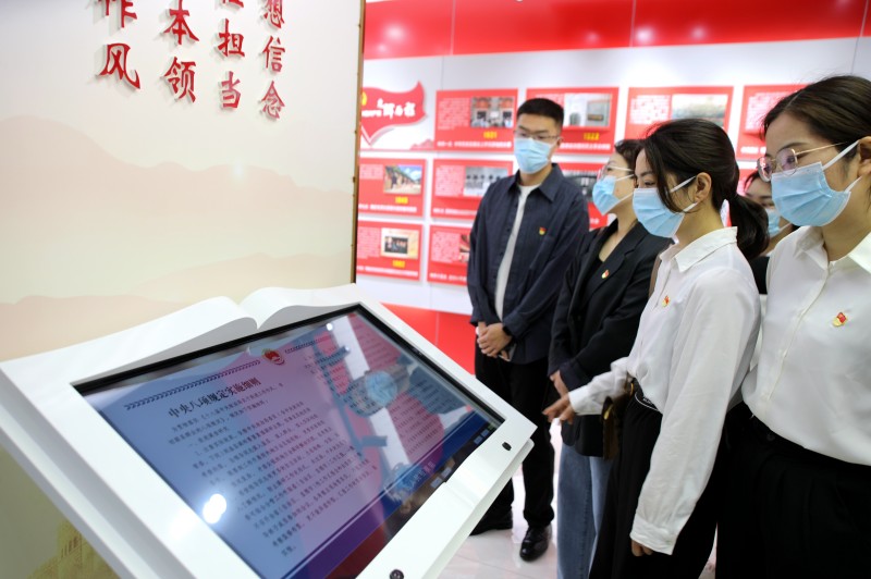 首站,青年干部們來到海州區檢察院,接受警示教育洗禮。在講解員的帶領下,大家先后參觀了融媒體中心、黨員干部廉潔教育基地、廉潔教育互動點播等展廳,回顧了中國共產黨的光輝歷程,并運用“正面典型+反面案列”相結合的方式,通過以案說紀、以案釋法,教育引導青年干部以此為鑒、吸取教訓,自覺抵御各種誘惑,扣好廉潔從業的“第一粒扣子”。