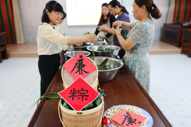 為做好端午節前廉潔提醒工作,青口公司紀委精心備制了“廉”味套餐,通過“包廉粽 話廉潔”主題活動、廉潔短信、公眾號通報典型案例等教育方式,重申廉潔紀律,為黨員干部打好預防針,提醒他們把好廉潔關,嚴防節日病。 (瞿 方)