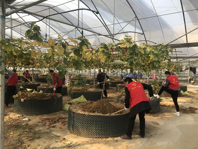 10月30日上午,青口投資公司團(tuán)委組織團(tuán)員青年前往育秧大棚參加志愿服務(wù),對(duì)200株限根葡萄施用有機(jī)肥,為來年掛果豐收蓄力。 (團(tuán)委)