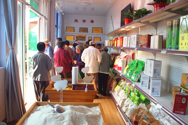 展銷中心主要展示銷售公司“鹽田玉”系列產品,清香米、富硒米、喜米等不同種類規格大米均在展銷之列,極大方便了周邊居民選購。