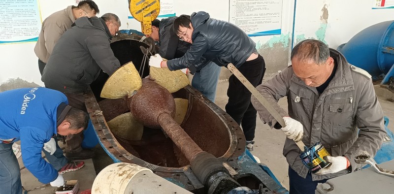 隨著天氣漸冷,為維護揚水站機械設備的精度和性能,延長設備使用壽命,近日,生產生活服務中心揚水站班組加班加點對機房內所有水泵進行大修保養。