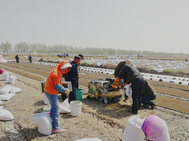 在科學(xué)浸種催芽、秧板田板面整平整細(xì)、適期精量播種的良好基礎(chǔ)上,今年繼續(xù)沿用地頭播地龍和大棚暗化相結(jié)合方式育秧,二分場(chǎng)7隊(duì)率先啟動(dòng)了地頭播地龍育秧,暗化育秧已于4月24日開始浸種,計(jì)劃于28日播盤。(陳琛)