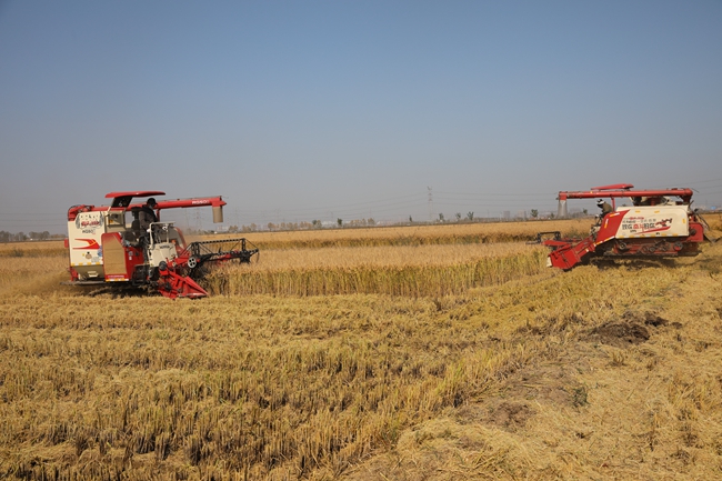 當前正值秋收大忙的關鍵時期,大新農場到處可見機械來回穿梭地收割、運糧、堆糧場景,空氣中彌漫著淡淡的稻香,一派繁忙的豐收景象。為確保秋糧顆粒歸倉,公司秋收工作組在田間和曬場間奔忙著,計量稱秤、農機管理、巡查值守、后勤保障,統(tǒng)籌安排搶抓晴好天氣抓緊水稻收割,全力打好秋收攻堅戰(zhàn)。農場從11月4日開始進入收割期,十幾臺收割機、拖拉機等農機全部投入生產,收割機每臺每天基本可以收割30畝左右,農場自營的5500余畝水稻預計于本周內全部收完。今年天氣多變性小,適合水稻生長,預計今年水稻的產量將高出去年。(大新農場)