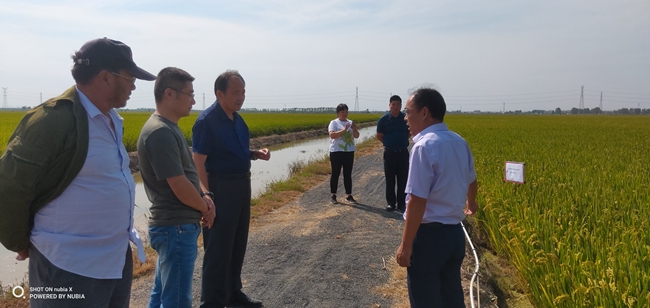 9月24日中午,江蘇省農(nóng)業(yè)科學(xué)院蘇北科技服務(wù)中心主任楊四軍研究員一行到大新農(nóng)場(chǎng)察看“優(yōu)香粳”水稻的生長(zhǎng)情況,與農(nóng)場(chǎng)負(fù)責(zé)人及條田工就優(yōu)香粳當(dāng)前生長(zhǎng)情況及生長(zhǎng)后期的注意事項(xiàng)提出了指導(dǎo)性建議。優(yōu)香粳是由省農(nóng)科院提供的優(yōu)質(zhì)稻米品種,曾在2018年上海優(yōu)質(zhì)稻米品鑒會(huì)獲金獎(jiǎng)。(劉 楊)