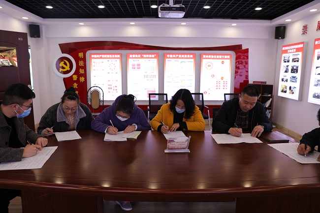 談話結束后,新任職干部參加了廉政知識測試。(仲偉彬)