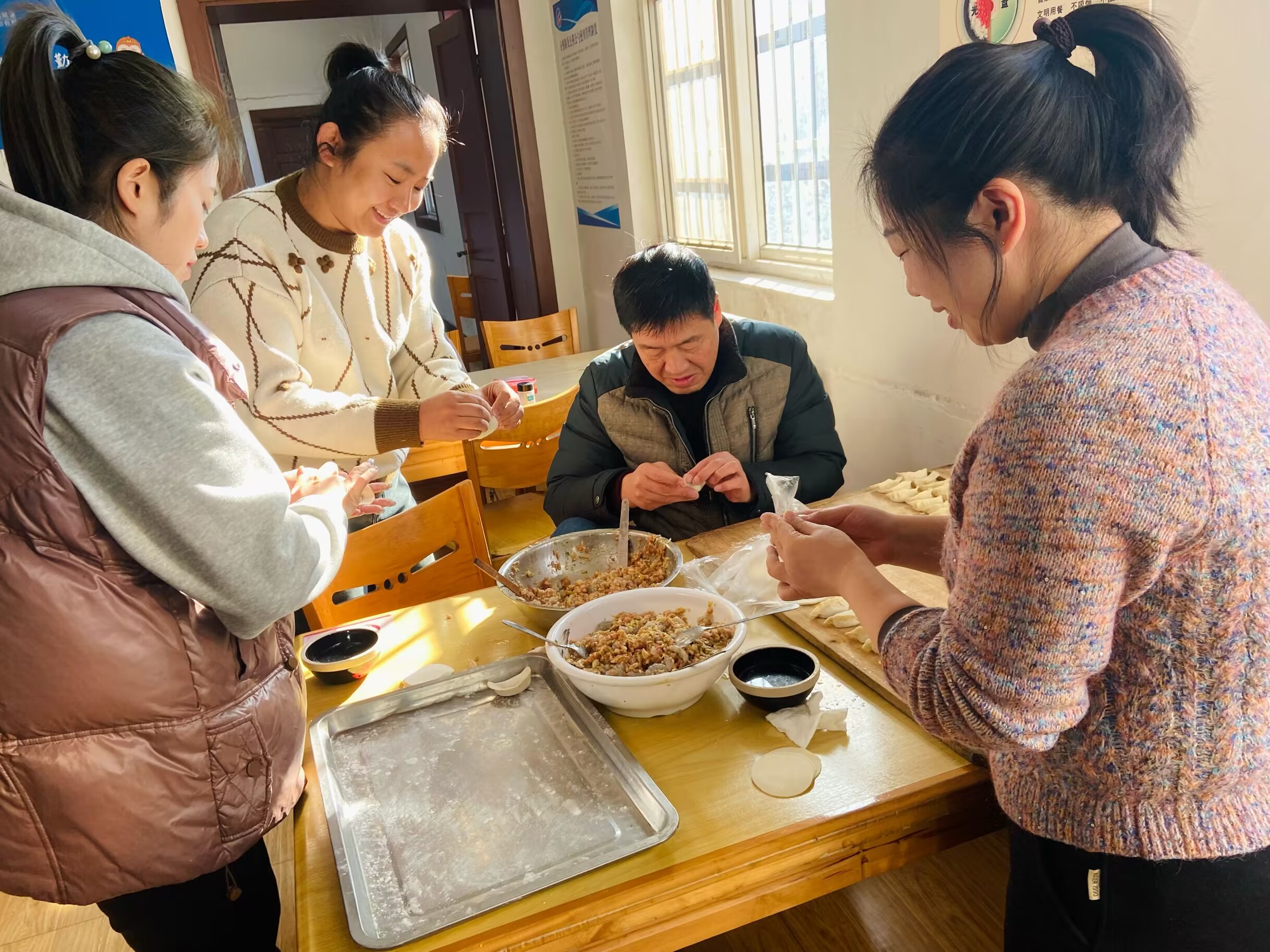 ? ? ? ?活動現場熱鬧非凡,食堂早早為職工們備好了餃子餡兒和餃子皮,大家有說有笑,配合默契,有的負責拌餃餡、有的負責包餃子,忙得好不熱乎。大家一邊嘮著家常,一邊互相切磋包餃子的技巧,對比著各自餃子不同的形狀,有人包的是元寶狀,有人包的是小船狀,在一陣陣歡聲笑語中,口味不一的餃子就這樣展現在大家面前。當一盤盤熱氣騰騰的餃子端上桌,食堂瞬間香飄四溢,能夠共同制作美食,吃著自己親手包的餃子,大家紛紛表示,今冬過上一個不一樣的冬至,感受到了“大家庭”的溫馨。