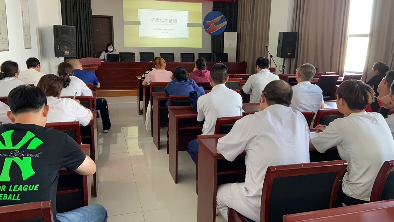 針對我公司2020年分級標準,本次培訓工作重點培訓了絲卷等級劃分細則、成品絲卷外觀判斷要求等內容。培訓期間,一線員工積極互動,對生產過程中相關質量問題進行了熱烈討論。培訓效果顯著,顯著提升員工生產質量意識,為實現“大干一百天,實現雙提升”目標,奠定了堅實的質量基礎。