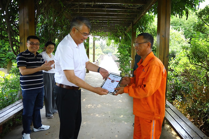 此次頒獎打破傳統集中表彰模式,將頒獎臺搬到生產建設最前沿,公司領導班子成員親自前往光伏安康驛站、創智綠園、大浦片區、云橋路施工現場、佟圩路施工現場、益豐園林園區6個一線點位,為獲獎員工頒發榮譽證書,并送上暖心祝福。當公司領導將“星級員工”證書遞到員工手中時,獲獎者難掩激動:“這份榮譽既是肯定,更是責任。我會繼續扎根基層,為臺北(華茂)貢獻全部力量!”