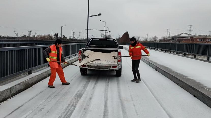 ? ? 220日傍晚,我市普降大雪,造成轄區交通通行受阻,給群眾出行帶來諸多不便和安全隱患,盛達市政分公司的養路人全力打好清雪除冰攻堅戰,24小時輪班作業,堅守在清雪除冰一線,保障群眾平安出行。他們呼出的哈氣把口罩上、圍脖上、睫毛上、眉毛上、帽子上都掛滿了冰霜,他們在風雪中前行的腳步,撥動了我們的心弦,讓我們看到了平凡養路人身上不平凡的精神,他們挑起的不僅是轄區道路暢通的重擔,也是人民群眾對美好生活的重擔。通過他們的輪番奮戰,橋通了,路也暢了,路上的行人紛紛點贊。