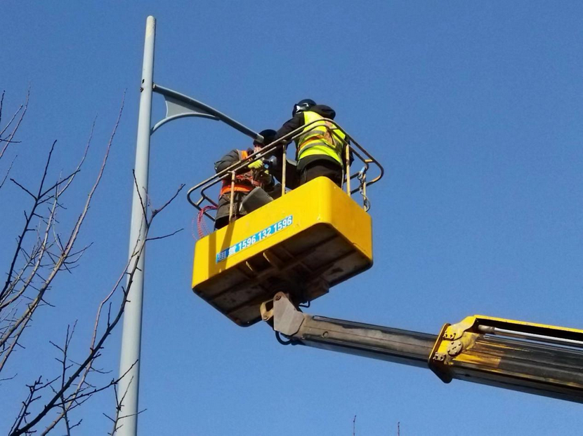 讓我們近距離感受一下路燈更換工人的日常,看似簡單的路燈更換工作其實并不容易,在高空作業比地面作業難度要大得多,尤其是在這樣寒冷的冬季,升降機升得越高,難度就越大,也越危險。市政工程人員每天早上7點多到達施工現場,中午吃完飯、撂下筷子,12點多鐘就投入到忙碌的工作中去,每天迎著朝陽出發,踏著月光歸家,奮斗的生活忙碌而又充實,讓我們為他們點贊!