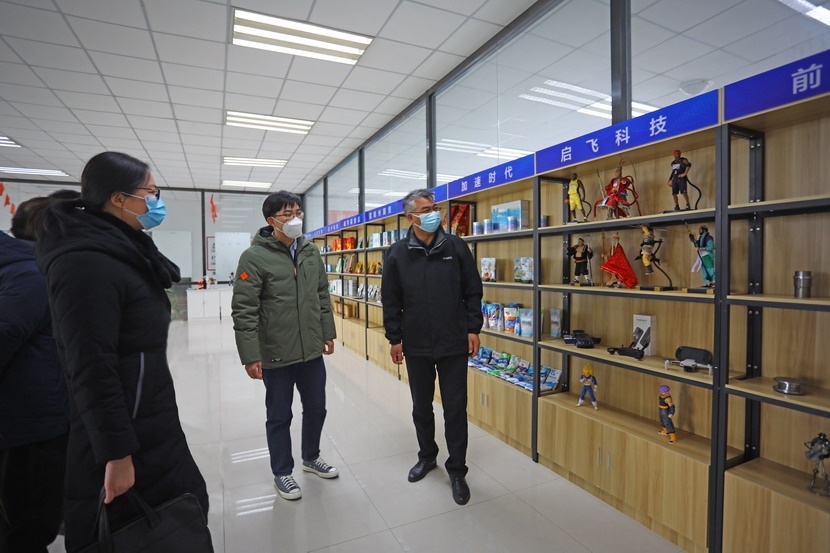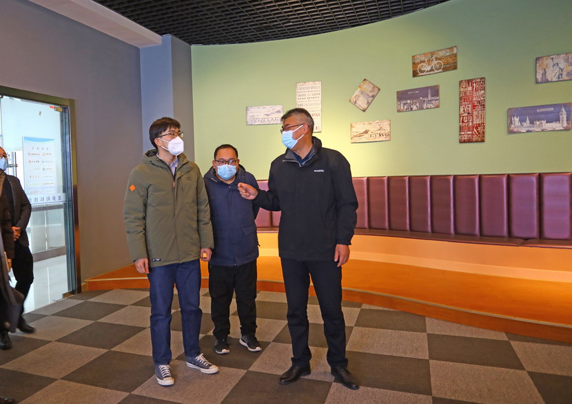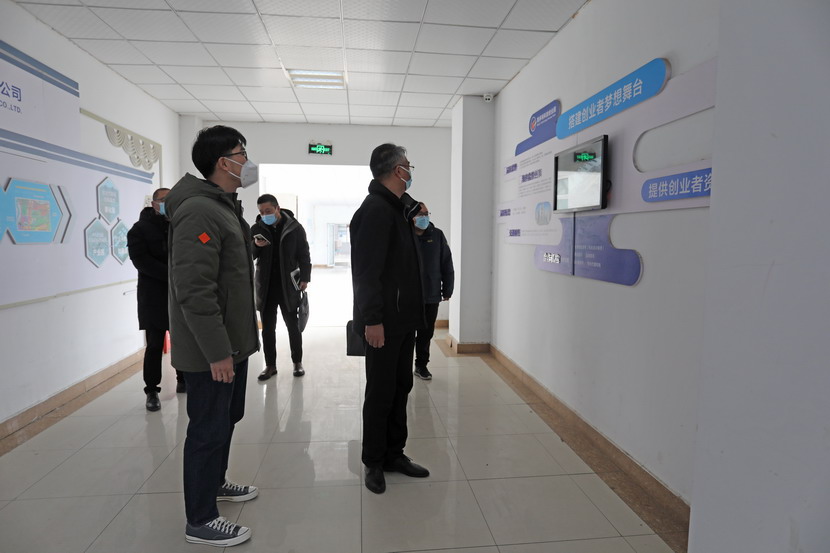 王德志一行逐一查看了孵化基地宣傳欄、連廊、孵化企業辦公場所、孵化產品展示區等關鍵部位復新進展情況,詳細詢問了總體進度計劃、施工安全管理情況,并對功能布局、內部裝飾等方面提出了指導意見,現場討論了迎檢工作中存在的問題。