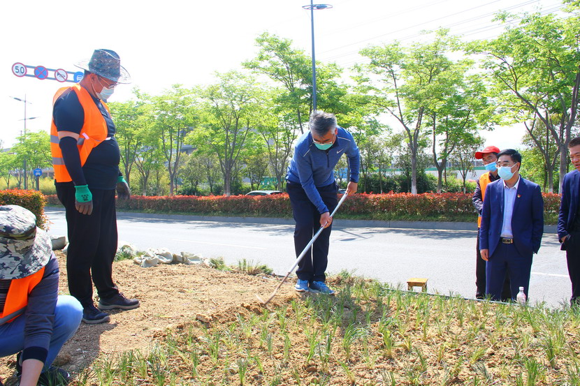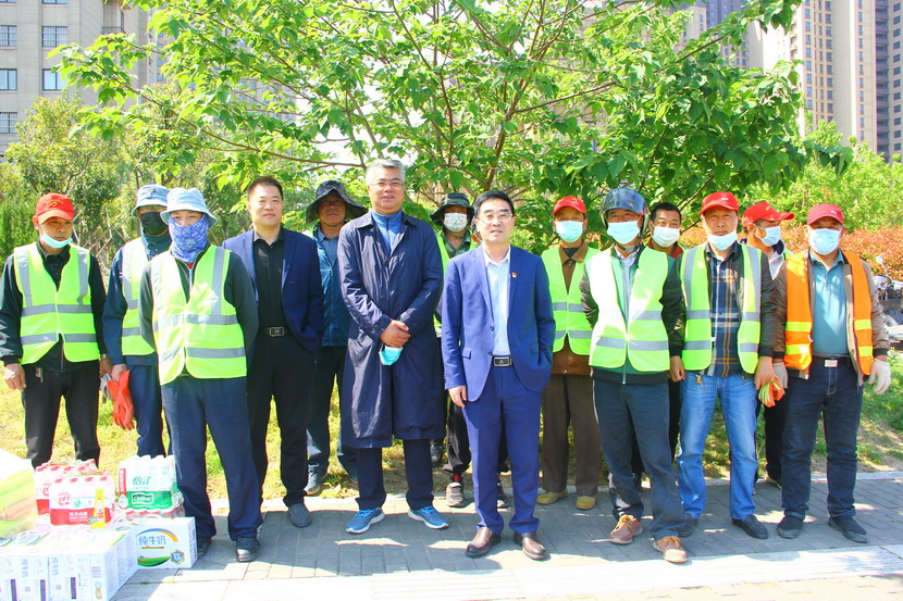 公司領導一行首先來到東方大道綠化工程現場,看望慰問海州灣公司志愿服務隊廣大職工。五一期間,翔立分公司承接一單綠化工程,由于時間緊任務重,全公司各單位、機關同志分別組成8支志愿服務隊,大家放棄五一假期,全力支援翔立分公司。董事長王德志說,現在正值“五一”勞動節,大家為了臺北的明天,為了自己的夢想放棄五一假期,讓人十分感動,你們仍然堅守在崗位上,大家辛苦啦!”