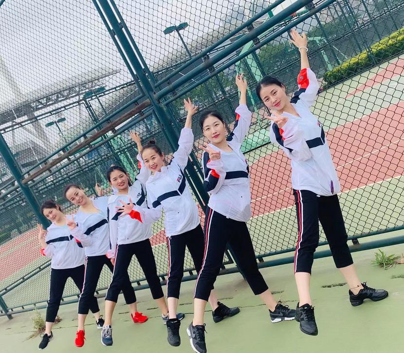 平日里帶領(lǐng)“工投舞蹈隊(duì)”訓(xùn)練的秦英(右三)