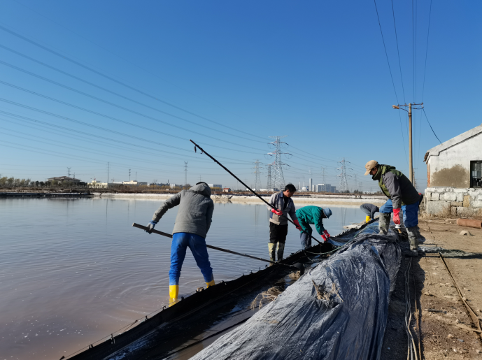 海州灣公司的礦鹵鹽升級改造續產工程現場,工人們干得熱火朝天,十分起勁。修復塑池工序復雜,勞動強度大,知悉此情況后,公司黨委組織安排各支部黨員職工輪流至海州灣公司助力修灘。現已完成先鋒班組結晶池池埝修整7塊,2240米,拆分浮板晾曬200米。