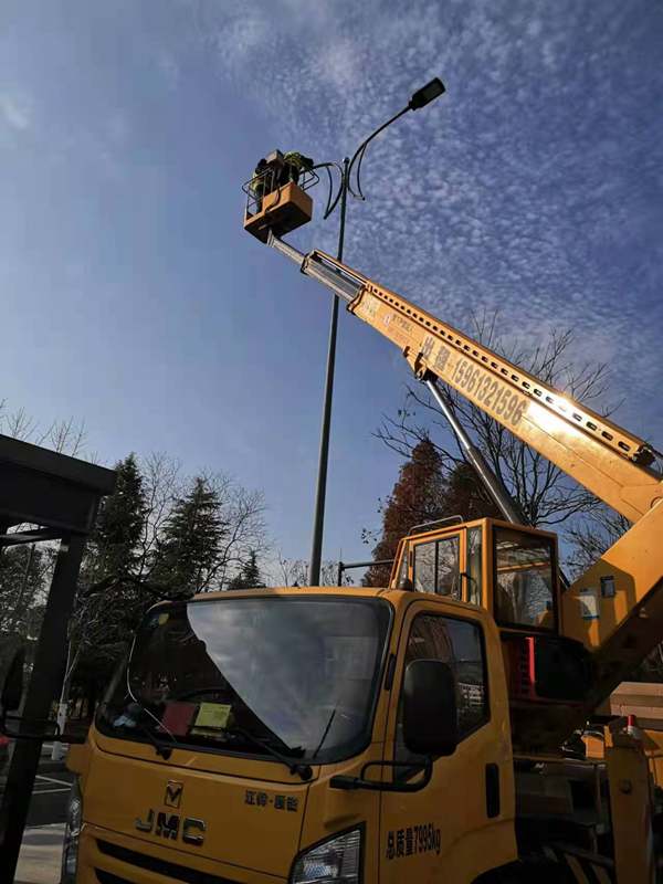 ?早已習慣了風餐露宿的翔立人,中午一碗面條、或是一碗蓋澆飯草草了事,飯后不休息,直接爬上高空作業車繼續工作,運輸隊圍繞著幾臺高空作業車也是忙個不亦樂乎,“加浦,像這樣將舊路燈立起來,先貼著車廂圍一圈,這樣可以多裝點”,既要負責將舊路燈收集送到甲方倉庫,又要領出來供給幾個隊的物料供應,同樣是忙的馬不停蹄。大家你追我趕,相互暗暗競爭者,賽安全,比質量,趕進度。晚上收工后,翔立辦公群里各隊報工作量“一隊今天完成了18根桿”,“二隊今天干得最多了,他們完成20根桿,換了40個燈頭,不簡單啊”,“你也不錯嗎,一個人完成了16根桿,還想咋的”,“今天俺們隊的工具不得手,明天我們隊一定要超過你們”,群里大家相互鼓勵著!