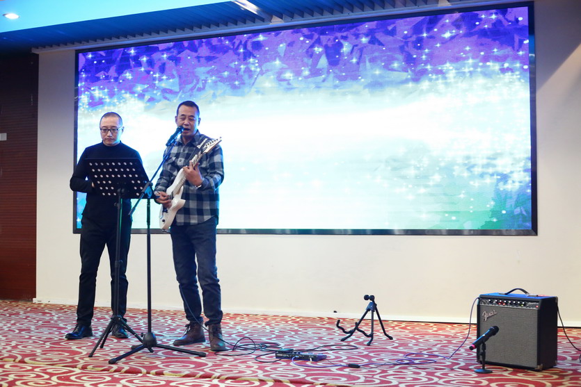 聯(lián)歡會節(jié)目豐富多彩,有獨(dú)唱、小合唱、魔術(shù)、游戲等。精彩的表演贏得了全場陣陣歡聲笑語,雖然表演很業(yè)余,但大家各個精神抖擻,充分展示了公司員工的蓬勃朝氣和奮發(fā)進(jìn)取的精神。在熱烈氛圍的感染下,公司領(lǐng)導(dǎo)也紛紛上臺表演節(jié)目為晚會助興,楊善革《我愛你塞北的雪》對新年的祝福和期盼,表達(dá)了迎新年的喜悅心情。公司黨委書記、董事長、總經(jīng)理王德志一曲《南泥灣》更是唱出了公司全體員工熱愛祖國,熱愛企業(yè),立志艱苦奮斗、自力更生,決戰(zhàn)2022,打贏臺北保衛(wèi)戰(zhàn),再創(chuàng)臺北新輝煌的決心。
