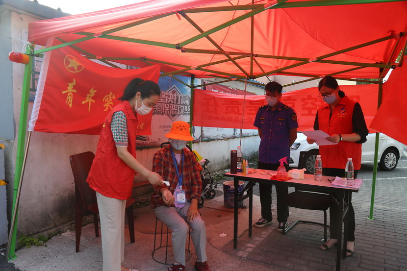 機關(guān)黨支部與東園社區(qū)攜手深入小區(qū)、各路段開展疫情防控工作,志愿者們協(xié)助社區(qū)完成檢查健康碼行程碼、測量體溫、宣傳疫情防控規(guī)定等工作,充分發(fā)揮黨員先鋒作用,展示黨員良好形象。