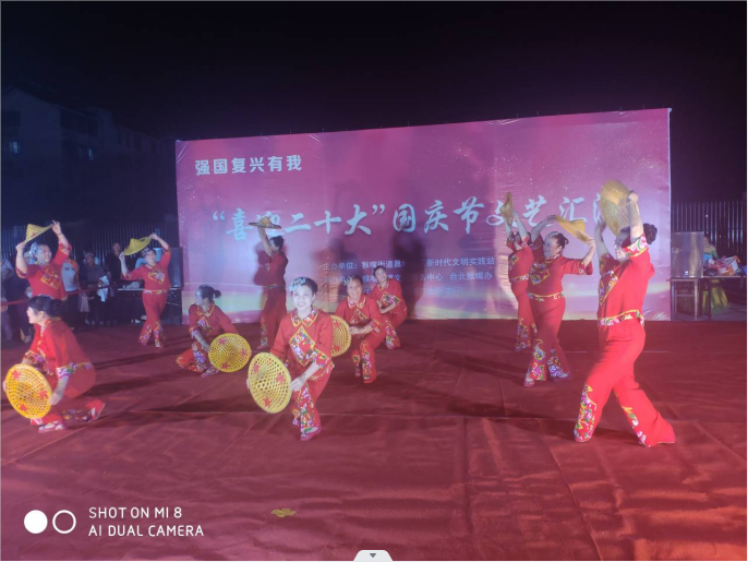 ? ?晚會在舞蹈《祝福祖國》中拉開序幕,隨著動聽旋律的響起,演員們舞起優美的舞姿,充分展示出新時代鹽場小區居民群眾喜迎二十大、謳歌新時代的精氣神;催人奮進的主旋律歌曲《火紅的日子美滋過》,展現出新時代群眾奮發向上的精神風貌;《十送紅軍》、《南泥灣 》等舞蹈、歌曲輪番上場,掌聲、喝彩聲此起彼伏;整場晚會都是由退休人員自編自排自演,為社區居民呈上了一場魅力四射、精彩紛呈、積極向上的主題晚會,使整個小區彌漫著濃郁的節日氣息。