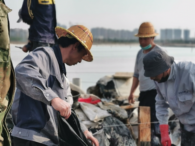 “比武”現(xiàn)場(chǎng)一片忙碌,各位“比武勇士”都是鹽灘的行家里手,共28名,分成4組,每組7人,在規(guī)定兩小時(shí)內(nèi)完成塑布安裝。“比武”過程中,每組成員通力合作、一絲不茍,從嚴(yán)控制好每一道安裝工序和環(huán)節(jié),拼速度、比規(guī)范,確保安裝的塑布在使用中得心應(yīng)手。