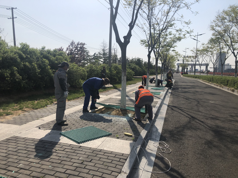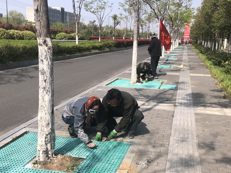 本次志愿奉獻(xiàn)活動(dòng)內(nèi)容是對(duì)黃海大道兩側(cè)樹池進(jìn)行隔柵安裝工程。在接到華茂公司的工程項(xiàng)目后,得知要在3天之內(nèi)對(duì)300座樹池進(jìn)行作業(yè),各班組在辦公群了解到此項(xiàng)目的工期緊且工程量大時(shí),自發(fā)組織了一場(chǎng)志愿奉獻(xiàn)活動(dòng)。第二天早晨8點(diǎn),26人的身影出現(xiàn)在了黃海大道,炎炎烈日下,我們分成4個(gè)小組,有的手握鐵鍬進(jìn)行填土、有的負(fù)責(zé)投放隔柵、有的手拿切割器進(jìn)行切割、有的進(jìn)行安裝作業(yè),分工明確、井然有序,充分發(fā)揚(yáng)了“四拼”工作作風(fēng)。